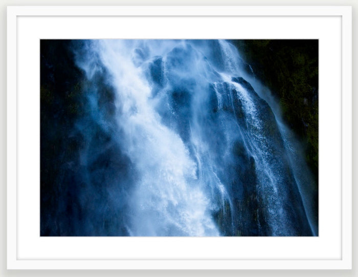 The Blue Waterbird celebrates the ethereal swirling waters of the Stirling Falls, Milford Sound in Aotearoa, New Zealand. A wall picture your wall will love.